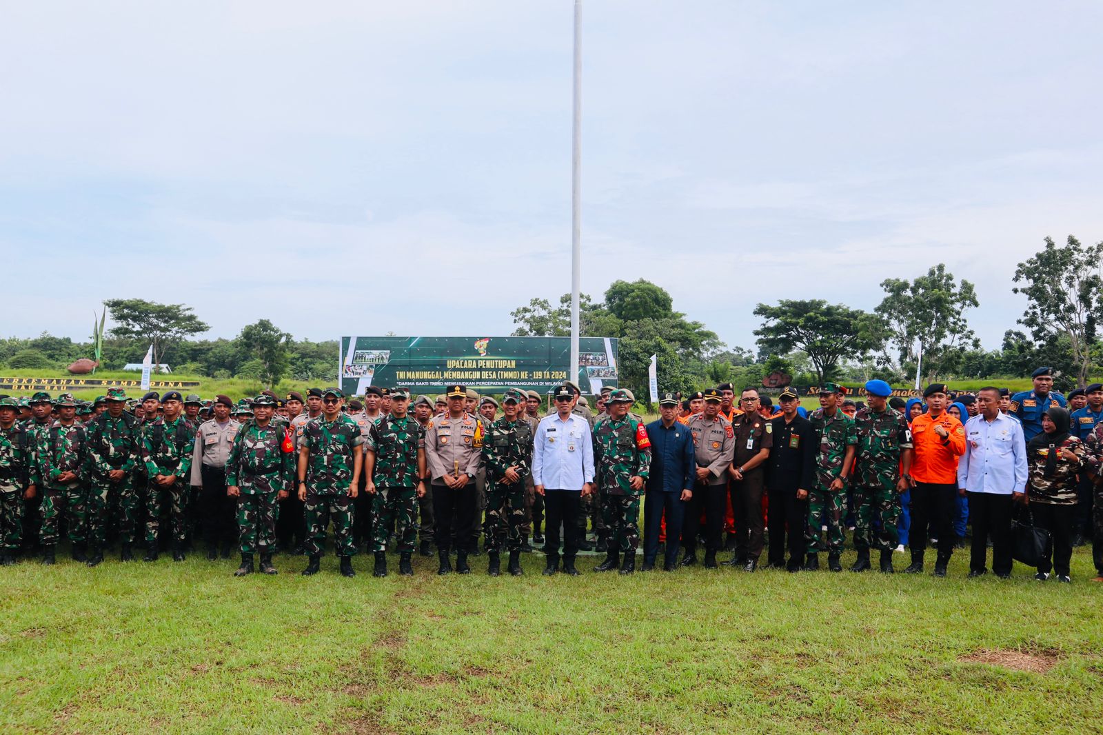 BAUBAU-Tentara Manunggal Masuk Desa (TMMD) ke-119 tahun 2024 di Kecamatan Sorawolio Kota Baubau berakhir pada 20 Maret 2024 ditandai dengan upacara penutupan secara resmi oleh Kasdam XIV Hasanuddin Brigjend TNI M. Syech Ismed, S.E., M.Han mewakili Pangdam XIV Hasanuddin di lapangan Samparona Kecamatan Sorawolio Rabu (20/3/2024).