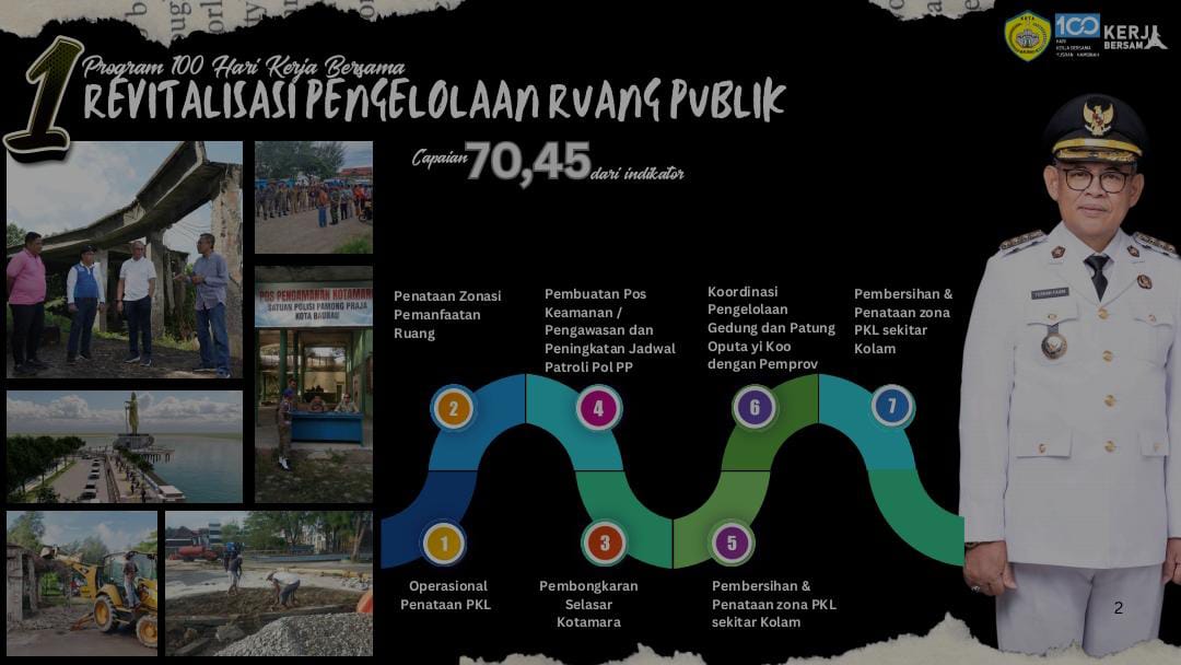 Berikut poin-poin capaian dari program revitalisasi ruang publik yang meliputi operasional penataan Pedagang Kaki Lima (PKL) untuk menciptakan ruang kota yang lebih tertib.