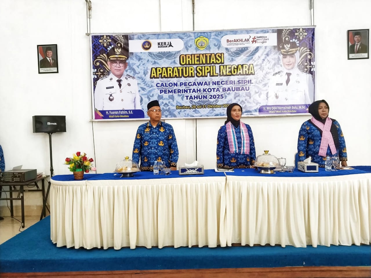 Pesan tersebut disampaikan saat membuka kegiatan Orientasi Calon Pegawai Negeri Sipil (CPNS) Pemerintah Kota Baubau Tahun 2025 di Villa Adios, Selasa 28 Oktober 2025.